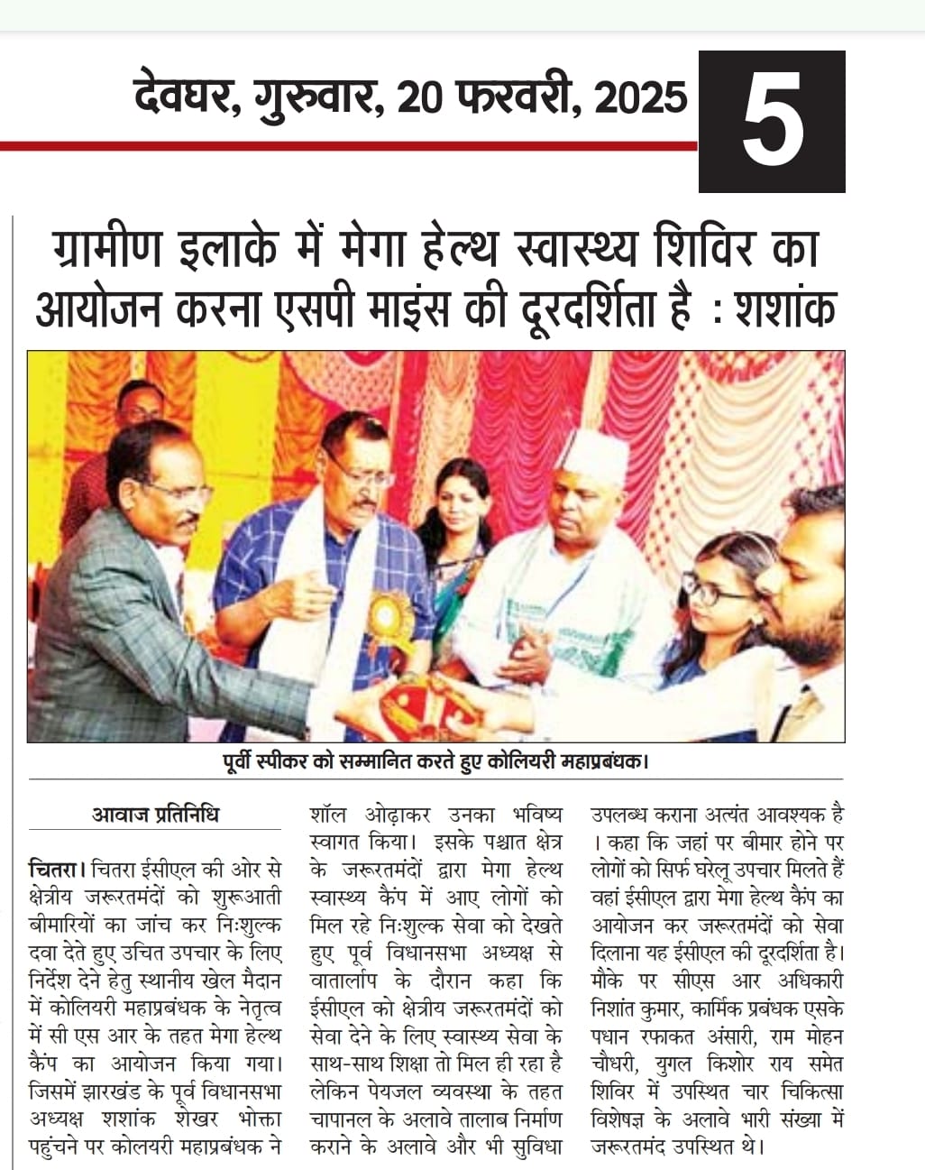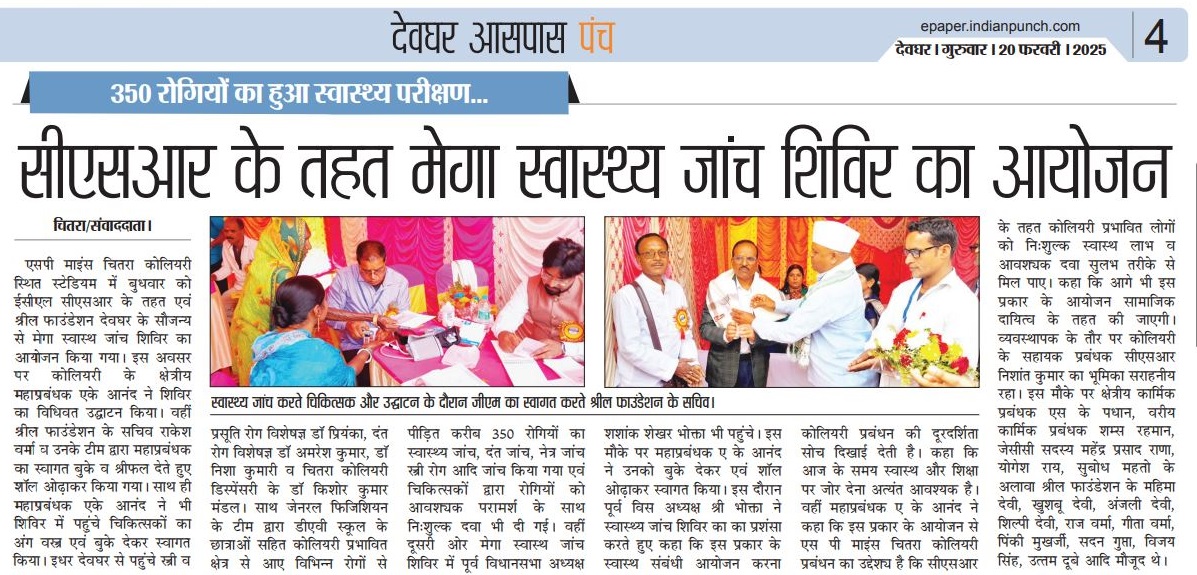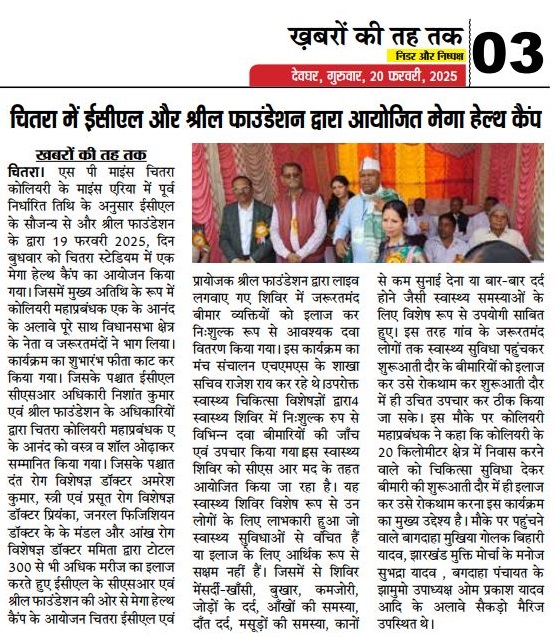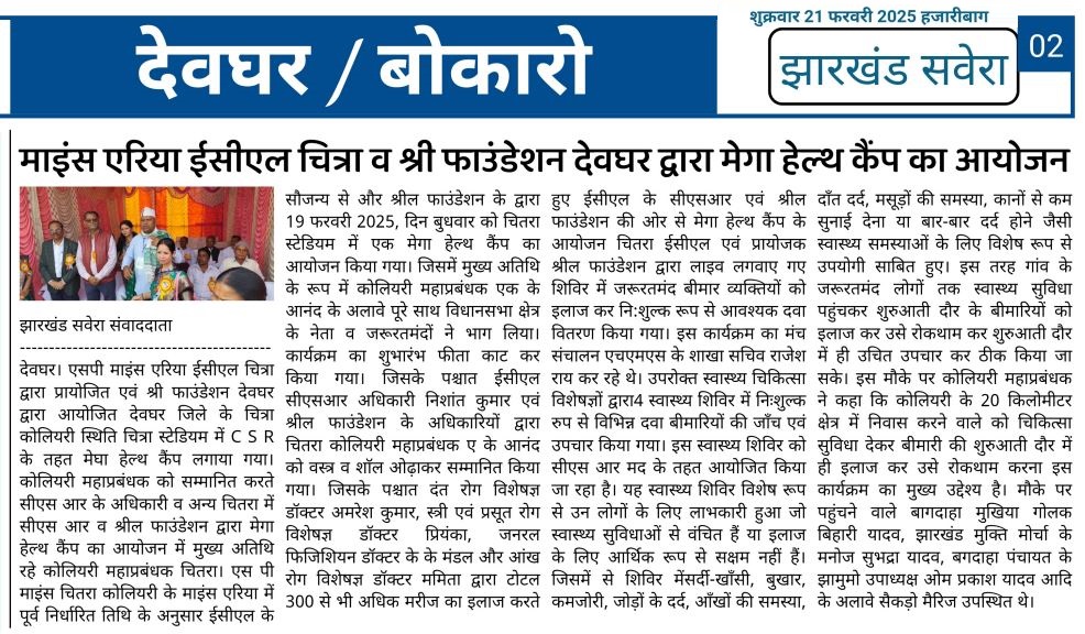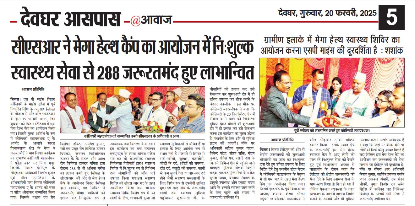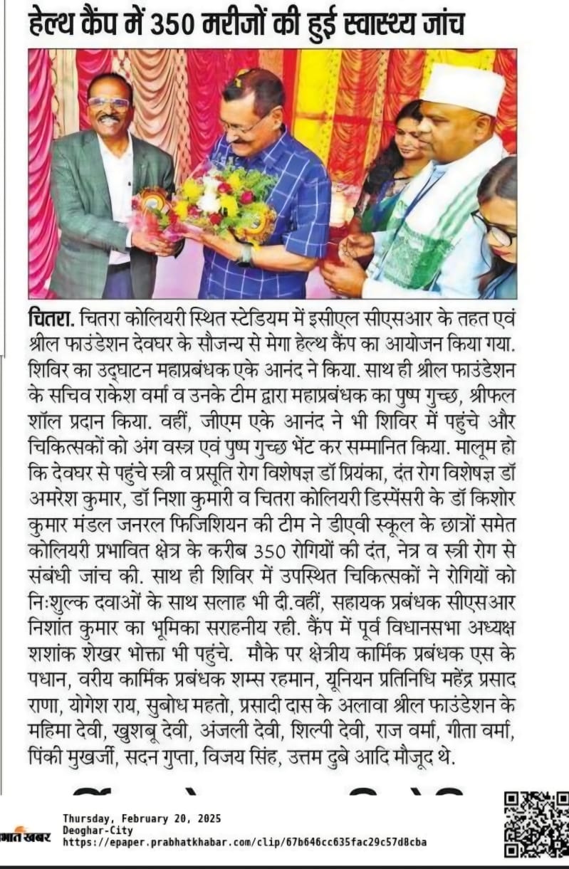 At the Chitra Stadium, Chitra, Deoghar, Jharkhand Mega Health Camp, the event was inaugurated by lighting the lamp by Mr. Shashank Shekhar Bhokta & G.M. ECL, Chitra. His presence and support greatly motivated the initiative.